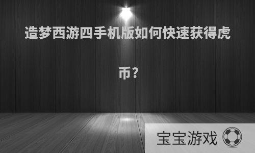 在造梦西游四手机版中,快速获得虎币的方法有很多,如完成任务、挑战副本、参加活动、拍卖行交易等。
