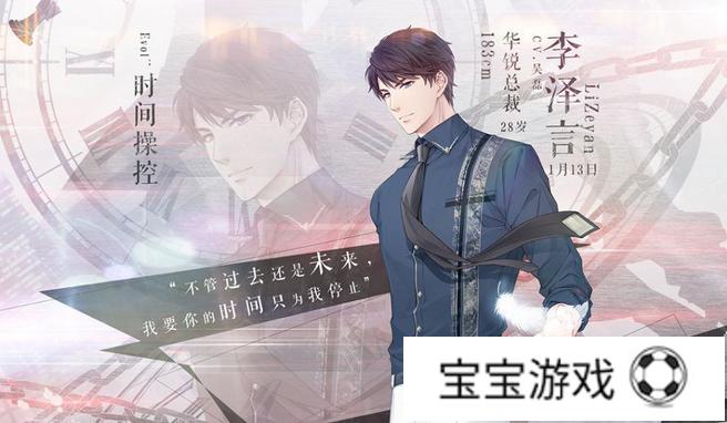李泽言李泽言的超能力是“时间控制”,他和女主的相遇也是他使用超能力停止了时间,从车轮之下救了女主。但是实际上,他几乎从不使用这个超能力,因为他足够完美足够强大,他的实力足以匹配他现在所拥有的一切。不过偶尔也会有小小的例外的时候。